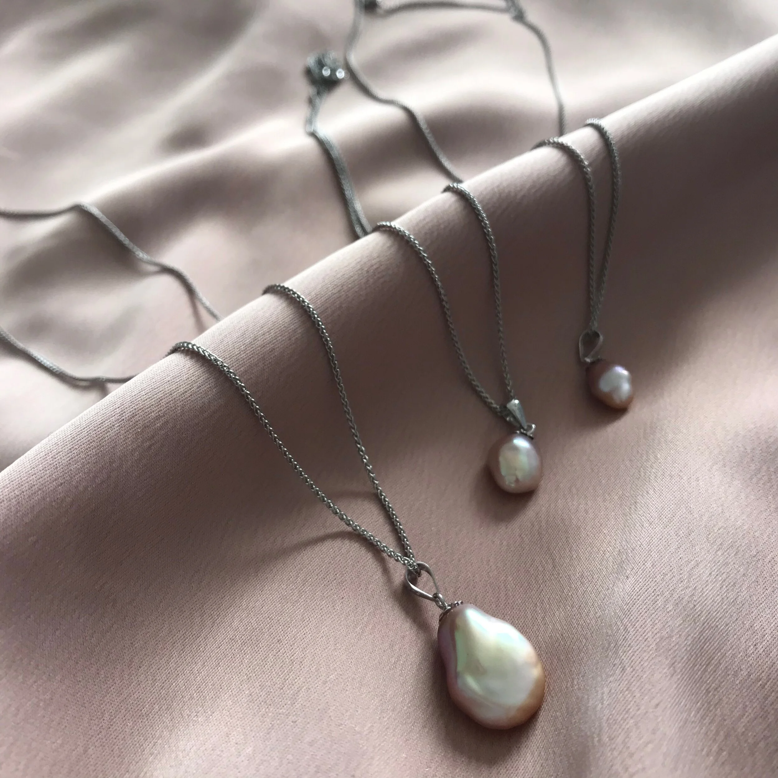 A nice trio of beads that you can wear together or separately. The intense colors of Kasumiga's Keshis will reveal your neckline.